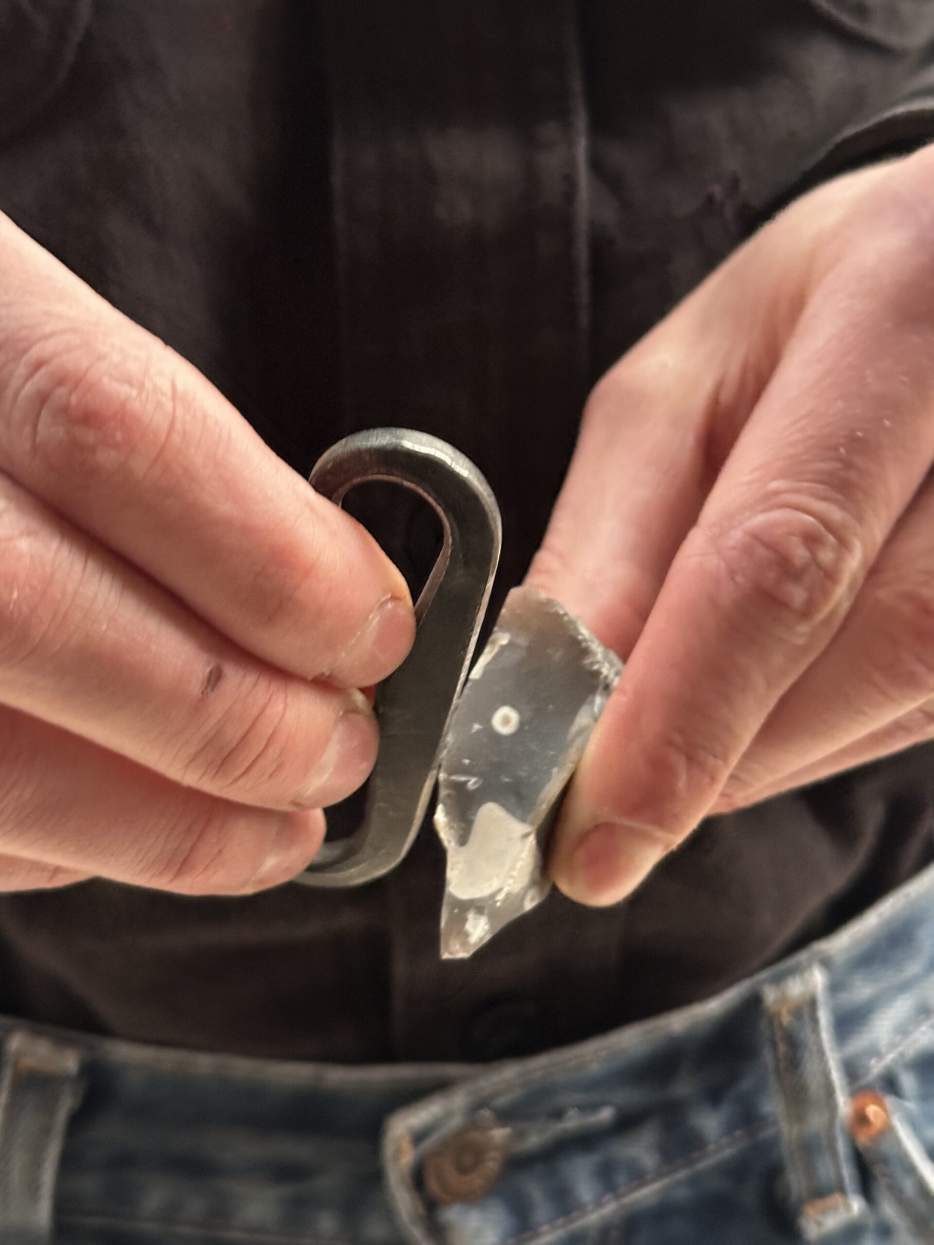 Unsere handgeschmiedeten Feuerschläger nach germanischer Vorlage –  jetzt im praktischen Set mit Feuerstein und Zundermaterial.